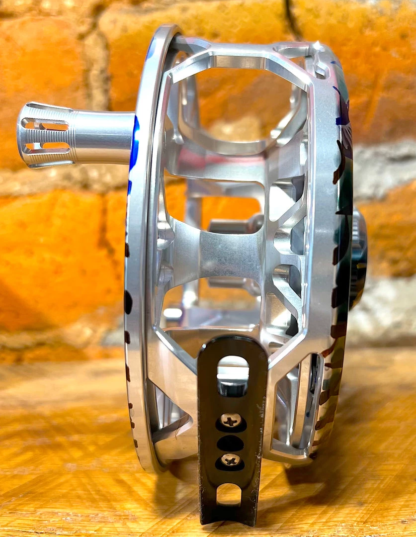 - Laser engraved fresh and saltwater flies on reverse side of drag plate that rotate as line is being retrieved