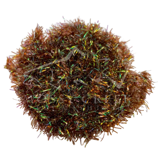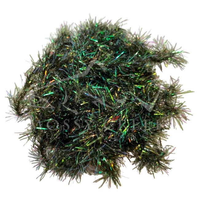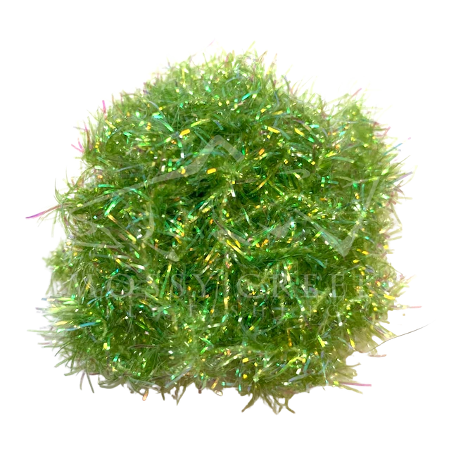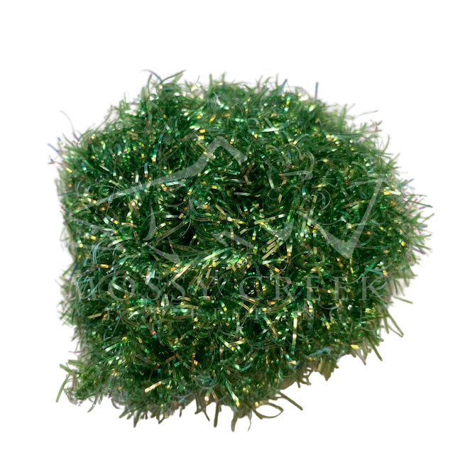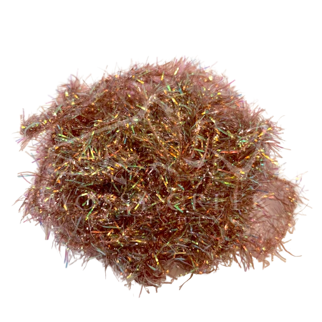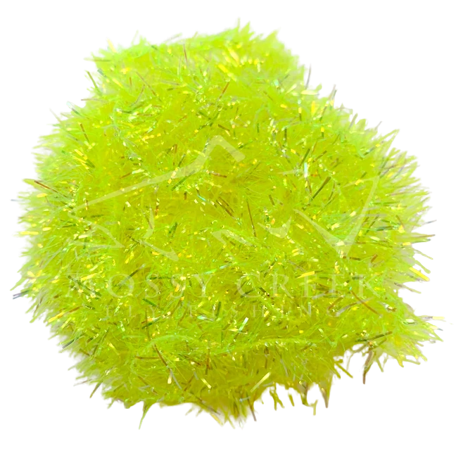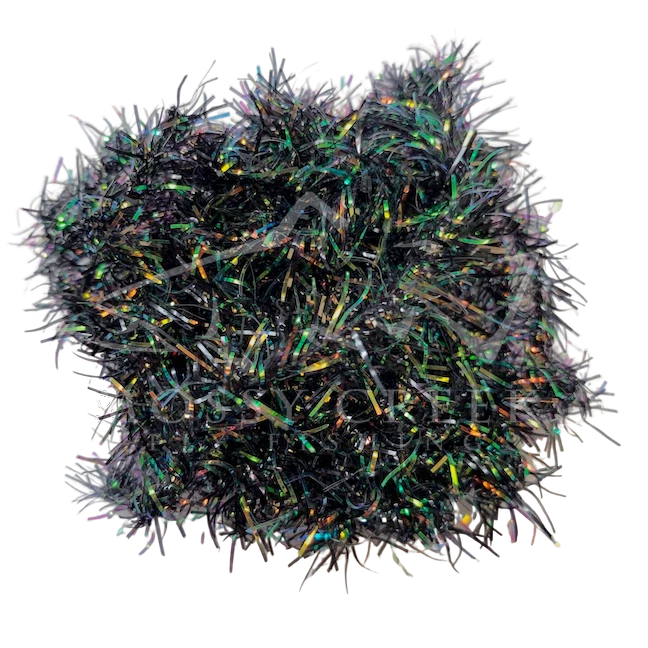Opalescent Estaz in standard colors. Estaz is a twisted core wrapped mylar imported from Europe. It makes all sorts of patterns look better, like woolly bugger bodies. Used on the Golden Retreiver and Trow Minnow.
