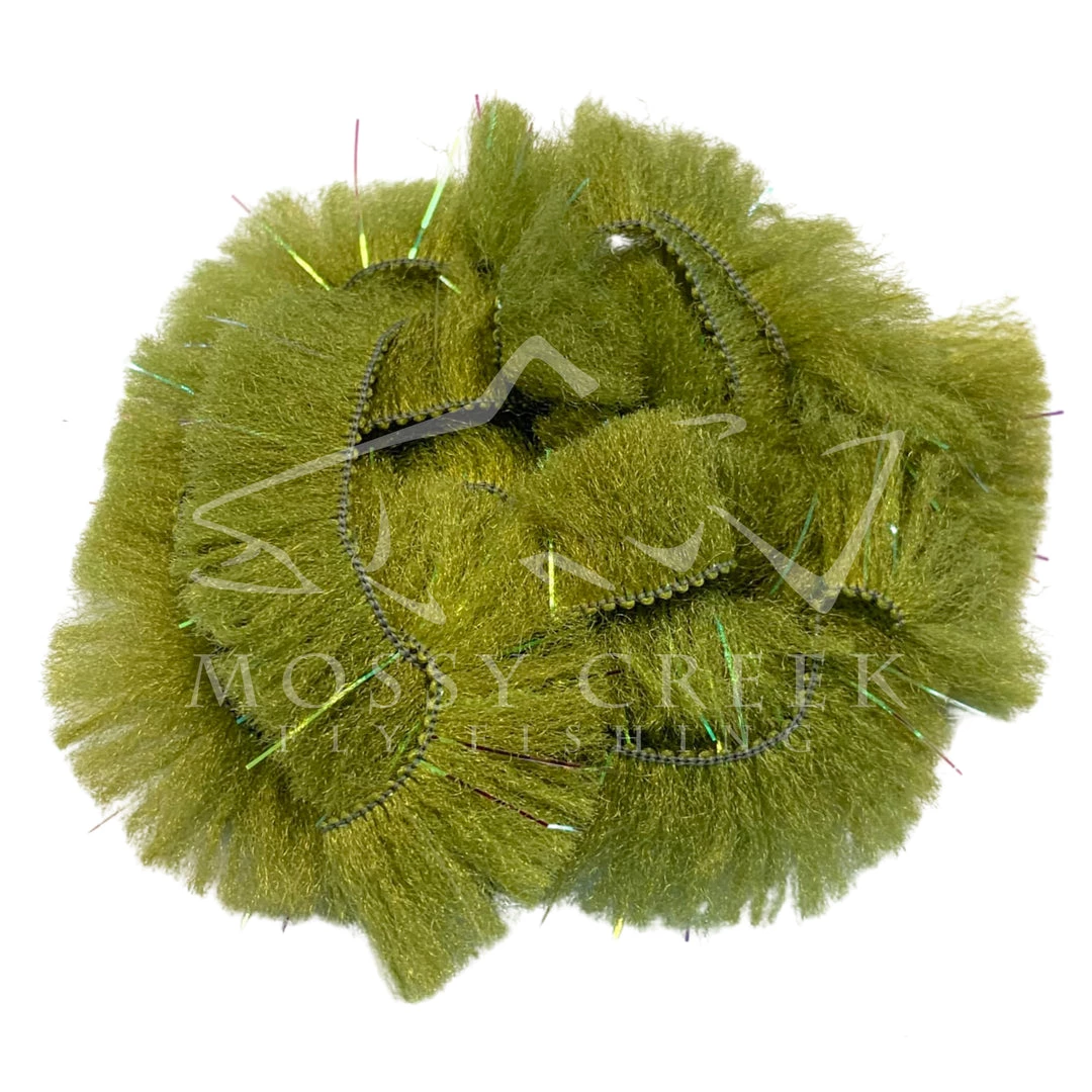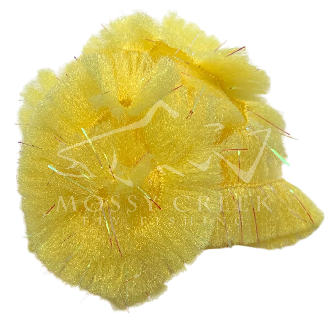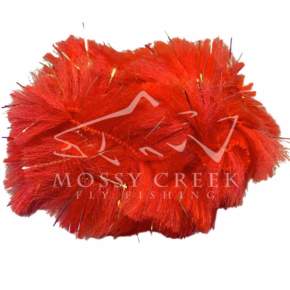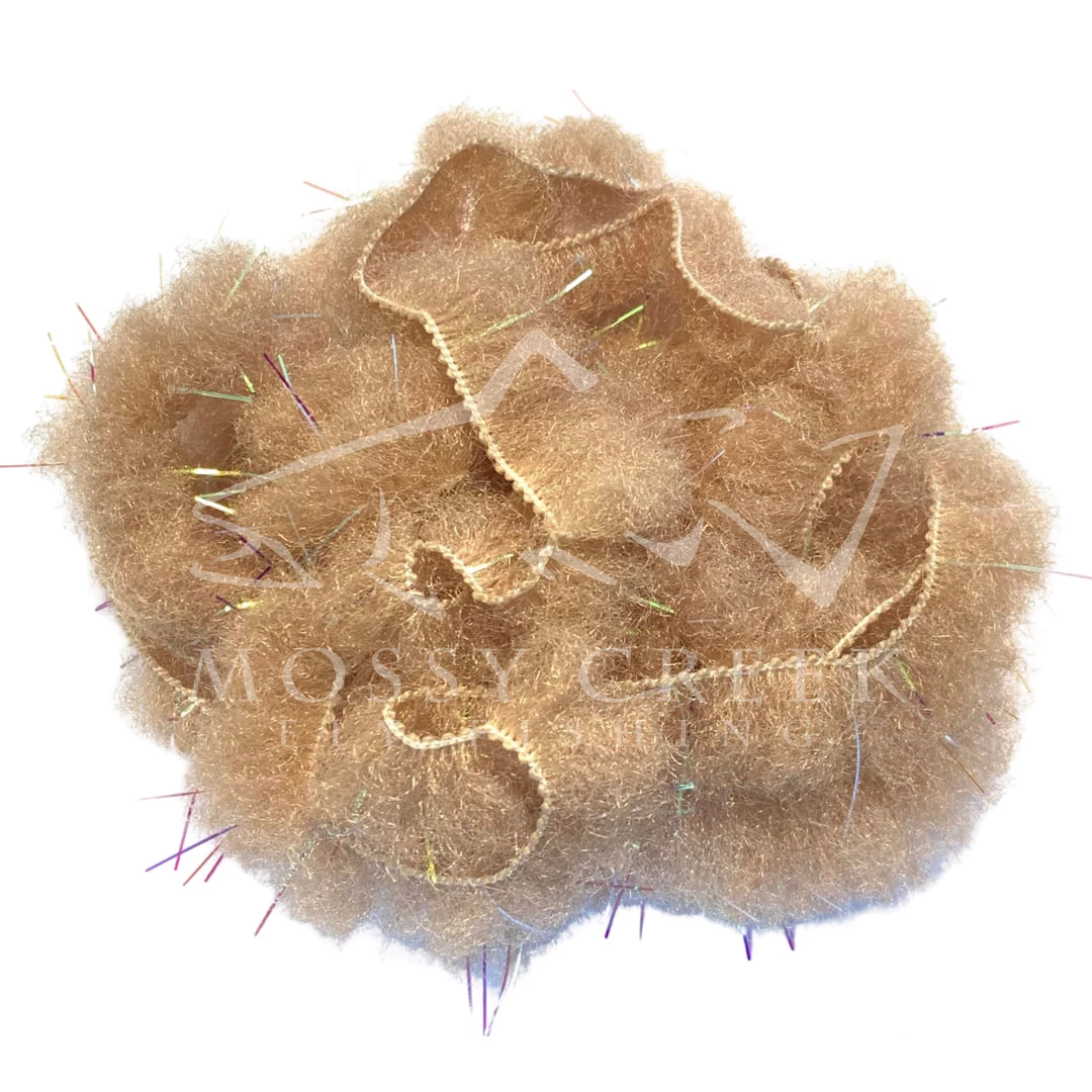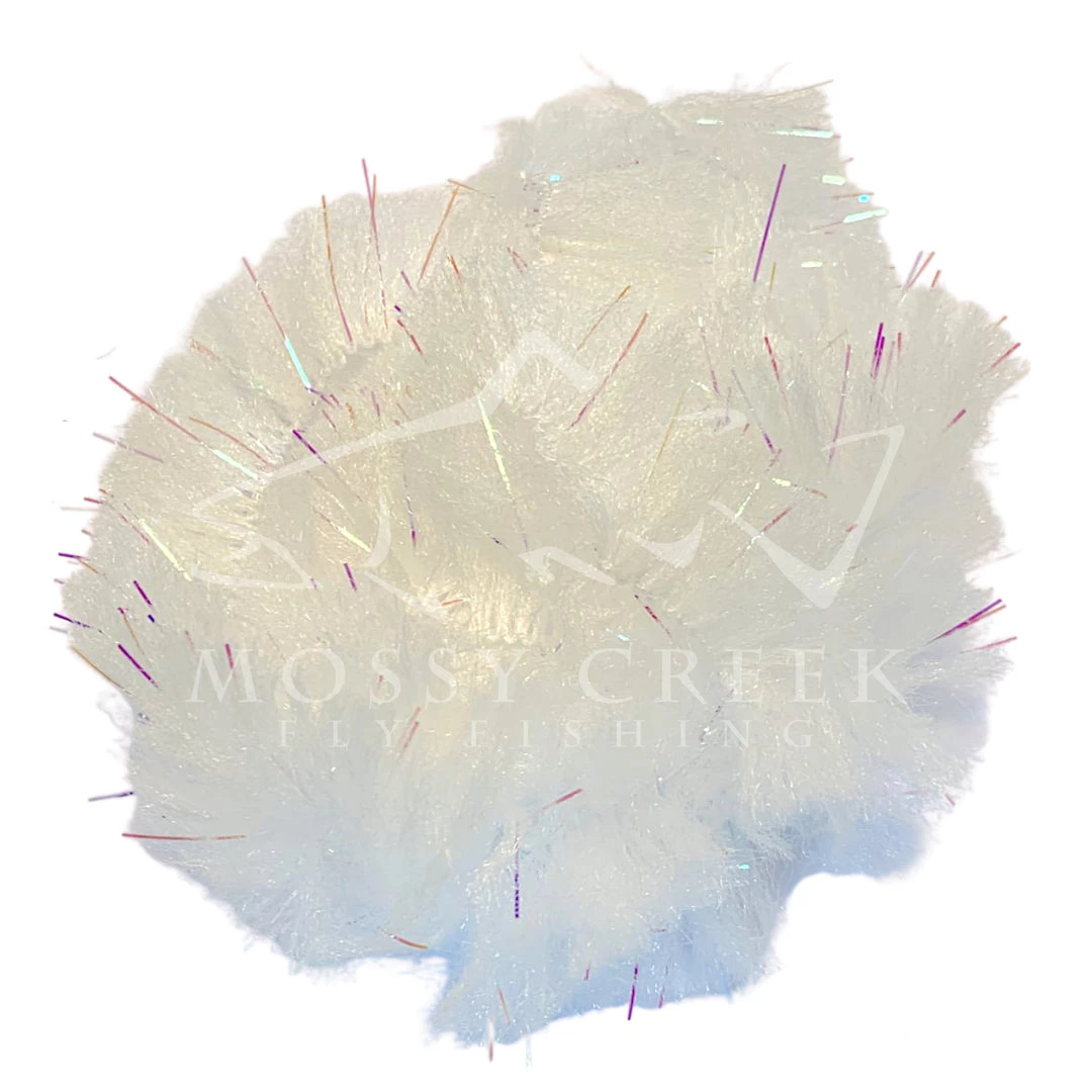 Fine translucent nylon yarn with filaments of mirror flash. Fast and easy for making full fur-like bodies. Simply wind onto the hook like hackle, comb, and trim to shape. Excellent for warmwater and saltwater applications. Made in USA.