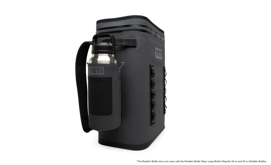 This Bottle Sling is the simple solution to transporting your H20 hands-free. That way you can eat snacks, skip rocks, or indulge your dog in a riveting round of fetch. Mount it to the HitchPointโข Grid on any Hopperยฎ Soft Cooler (or the Caminoโข Carryall Bag). But if youโre lookinโ to hike light, clip on the removable carrying strap, sling it over your shoulder, and enjoy the journey up to that gotta-see-it viewpoint.