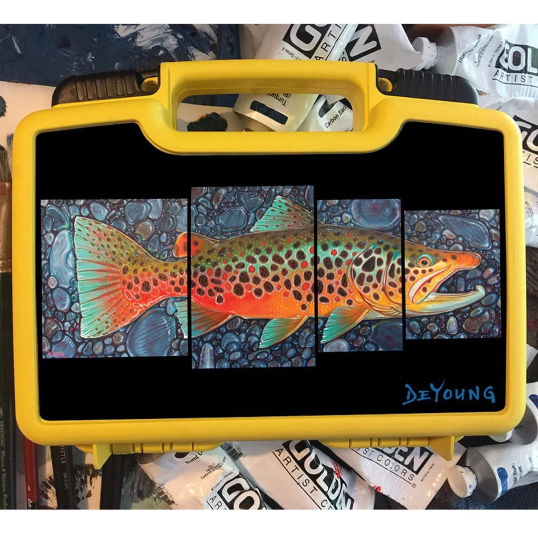 - Skinned with DeYoung 4 Panel Brown October artwork on both sides of the box! Water and Scratch Resistant material.