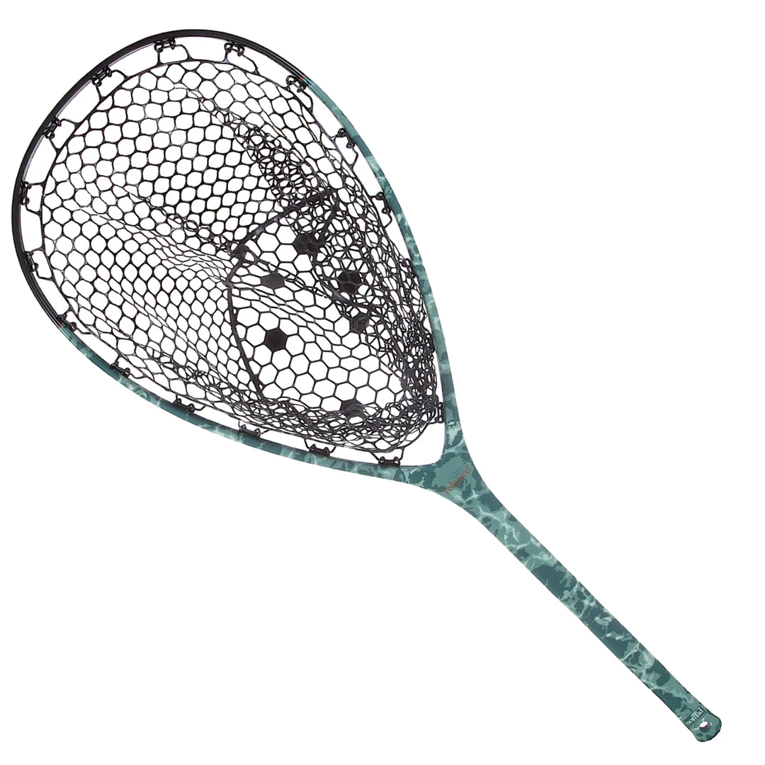 Nomad Nets are constructed with carbon fiber/fiberglass composite material. The result is a very lightweight and durable net. Nomad Nets are built for the conditions that prevail where great fishing exists; they are waterproof, UV protected, and float like a cork. All Nomad Nets come standard with a rubber bag.