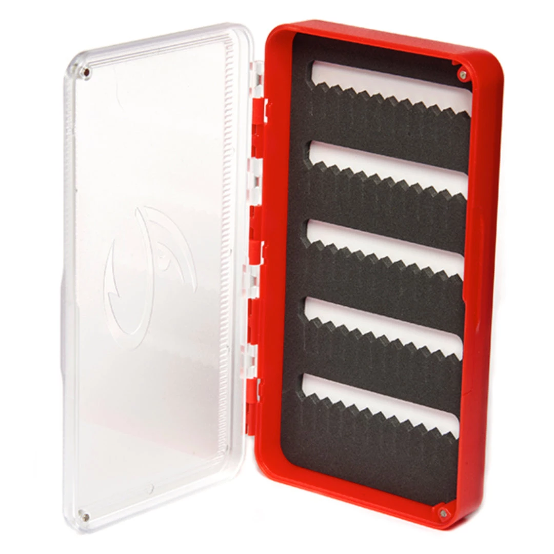 This handy sized box was conceived with the streamer and saltwater angler in mind. Made from super tough polycarbonate with plenty of secure parking space for up to 60 of those bulkier patterns, we’re not sure what else you could need for that trip out back. Benefiting from a sleek, premium frosted lid you can see what’s what before lifting the hood. Plus, as with all our boxes, there is the subtle addition of guide ridges to the outer casing to help you keep a firm grip on things. Size: 32 x 106 x 186 (mm)