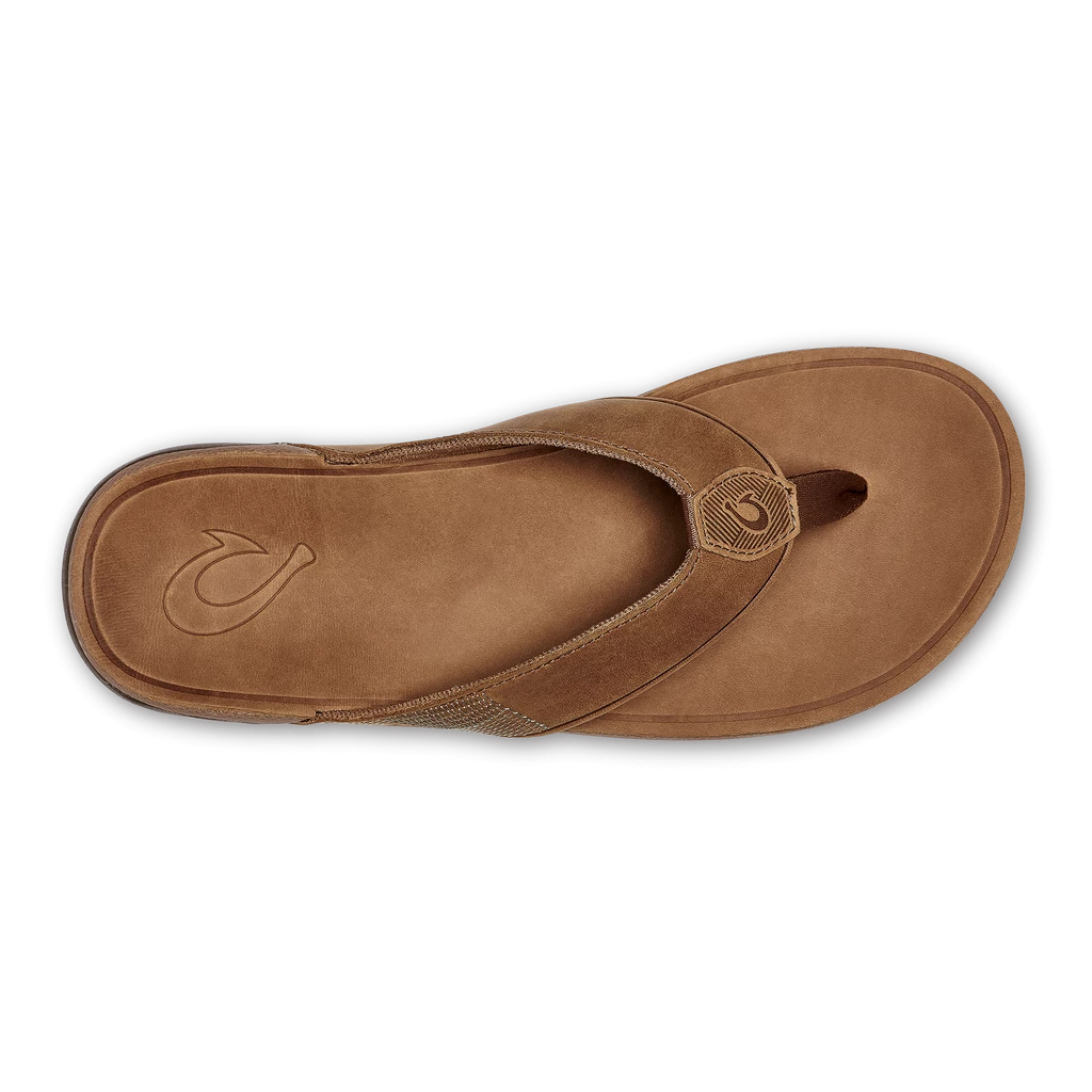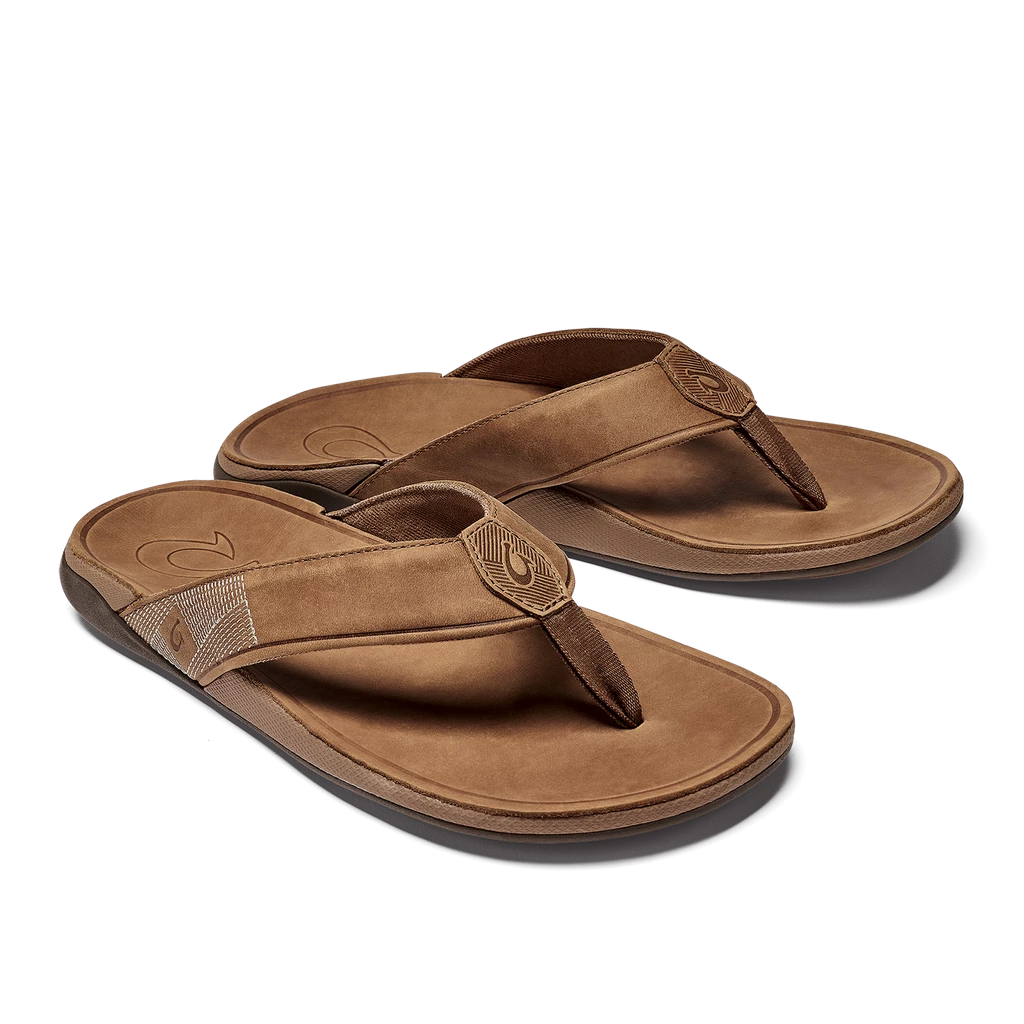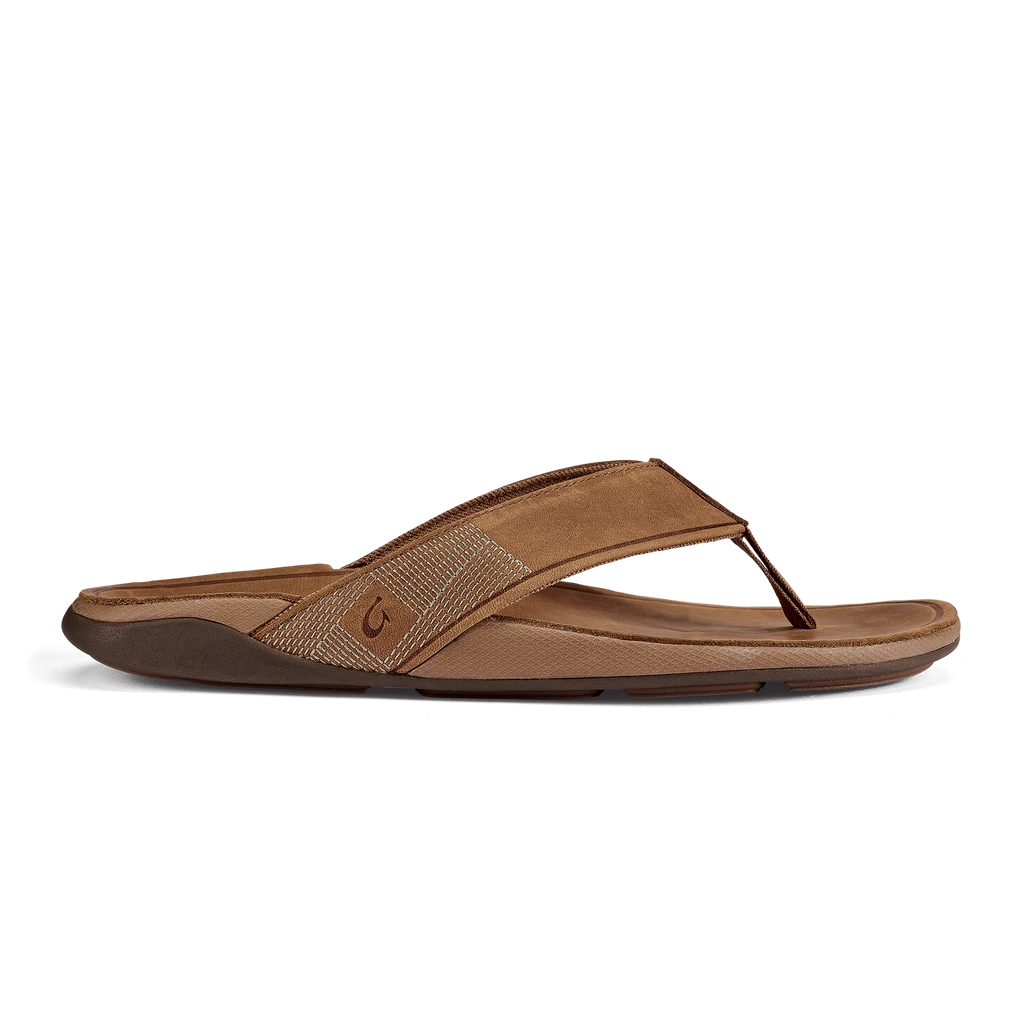 Olukai Tuahine Men’s Leather Beach Sandals Dark Wood