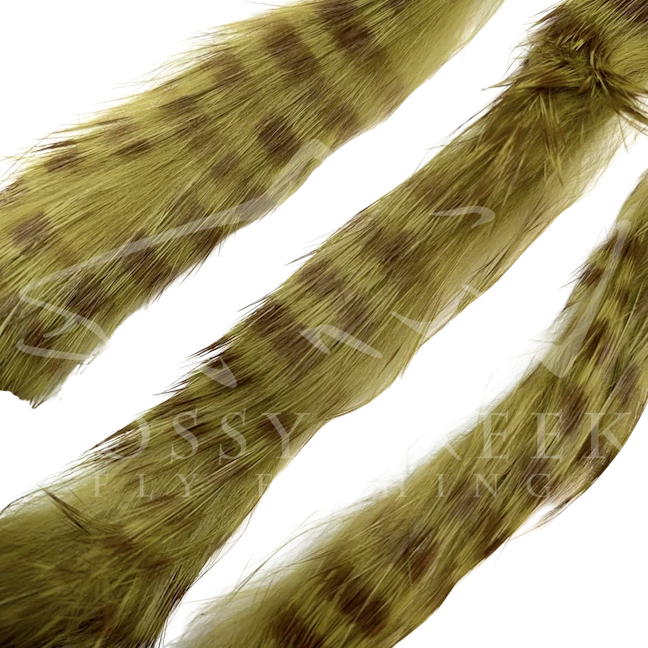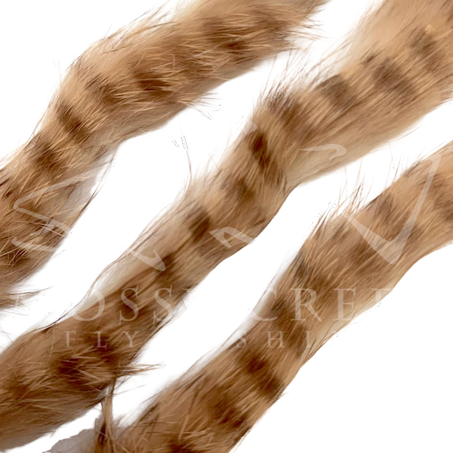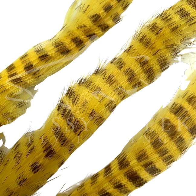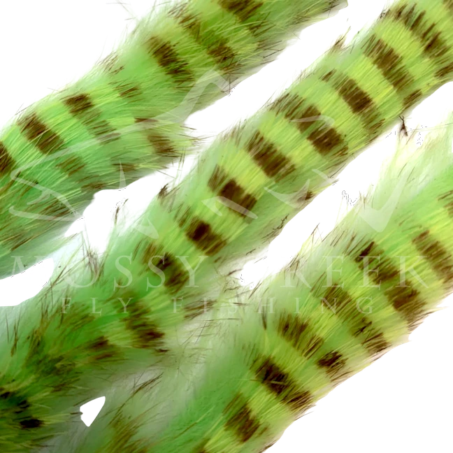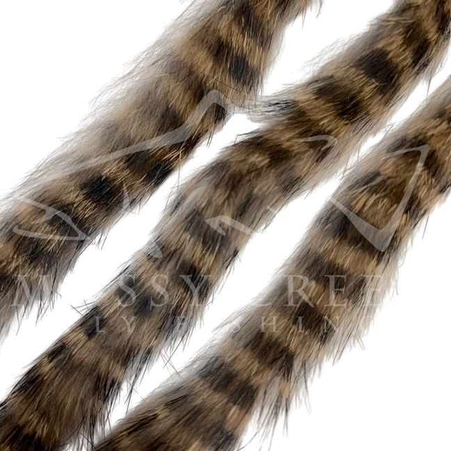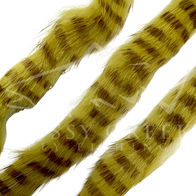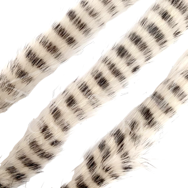 Gorgeously barred rabbit zonker strips. Your streamers just got an upgrade! A 1/8″ wide for average to small sized streamers.