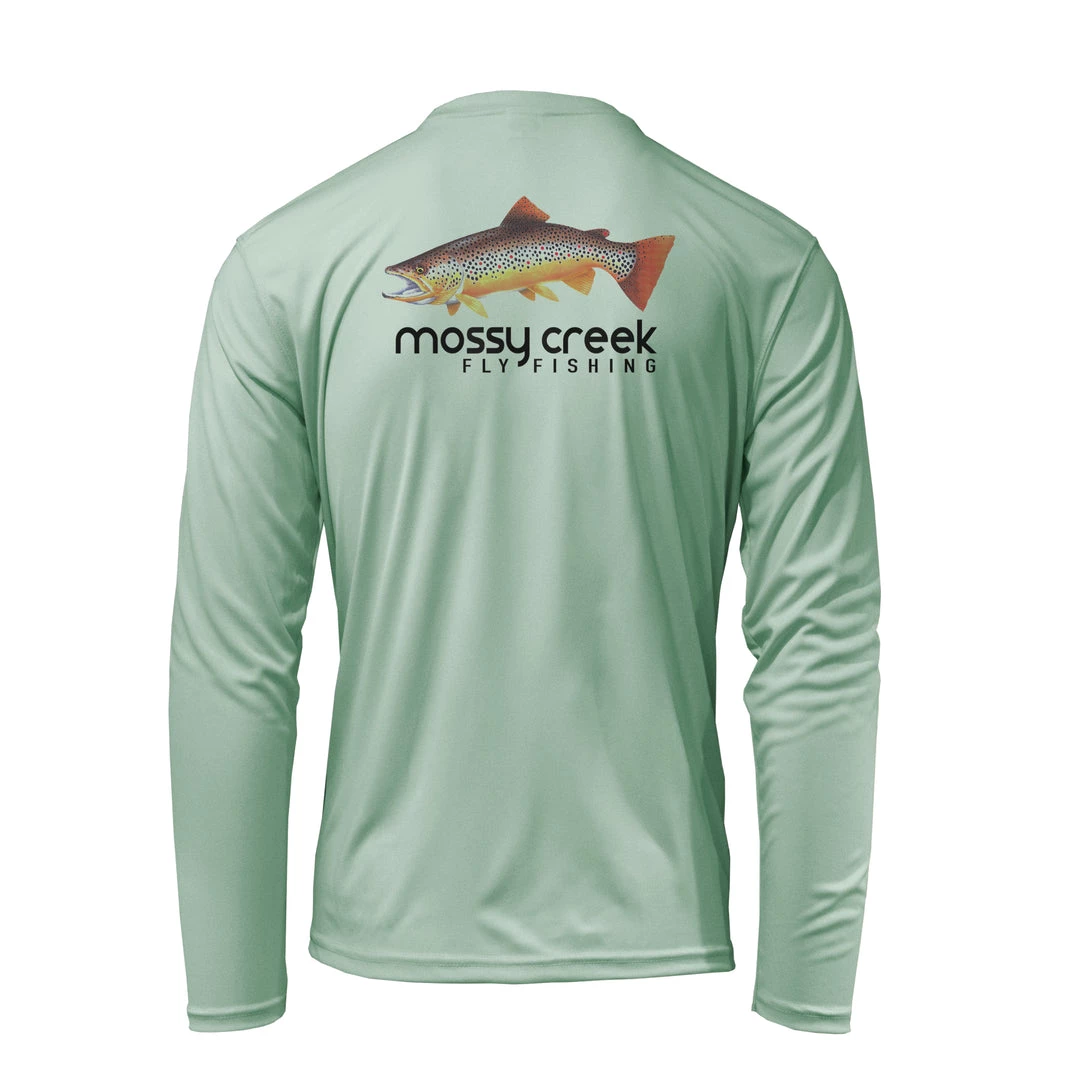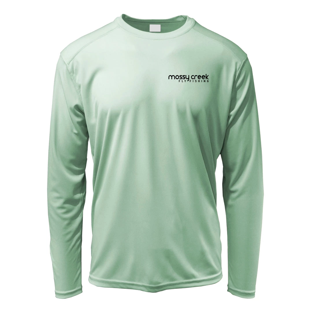 Introducing the Mossy Creek Solar Crew long sleeve sun shirts. These are our favorite style fishing shirts. Dye sublimated logo on the chest and full color logo on the back.