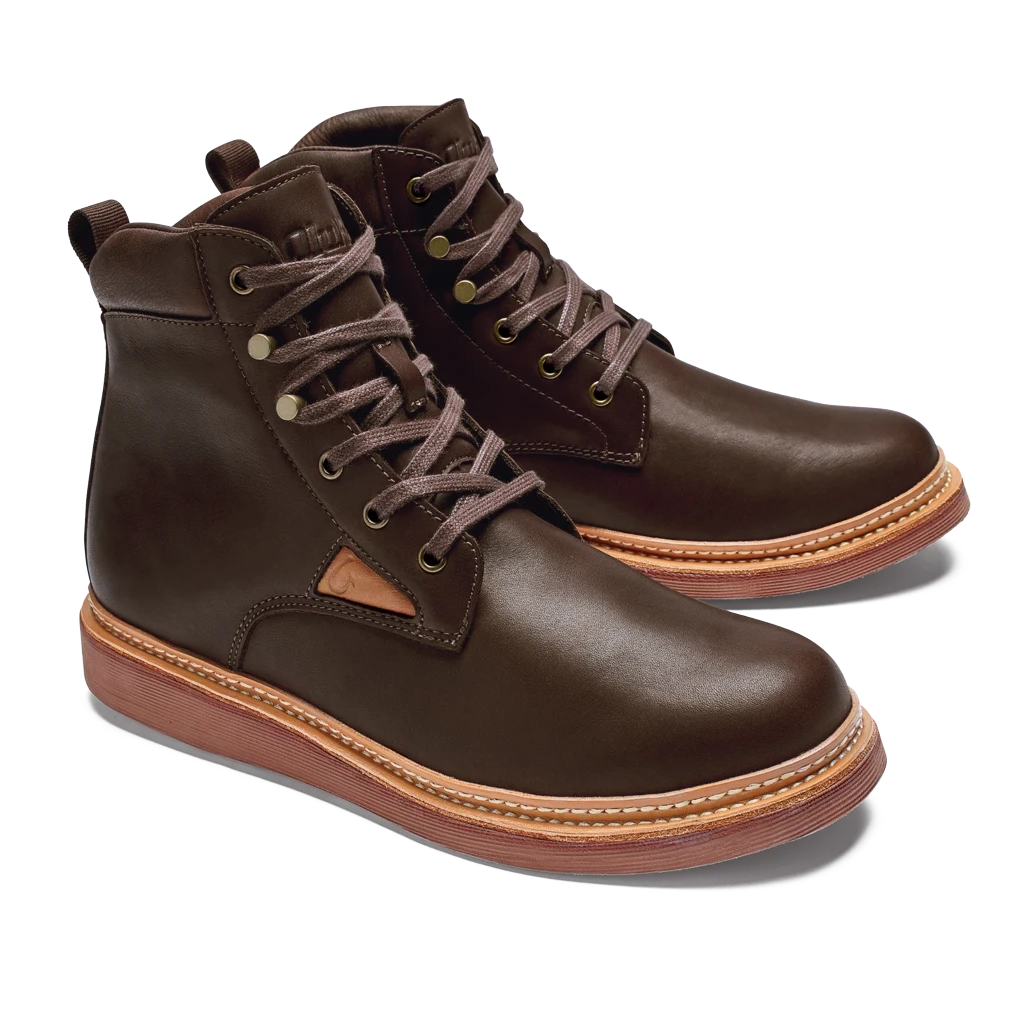 The Kilakila is a testament to strength and composure. This waterproof leather boot is as durable as it is handsome. Find serenity on the trails or command attention during a night out in Waimeaโthe Kilakila is designed to keep up with you. Its lightweight rubber sole keeps things easy while providing the underfoot cushion needed to stay comfortable all day long.