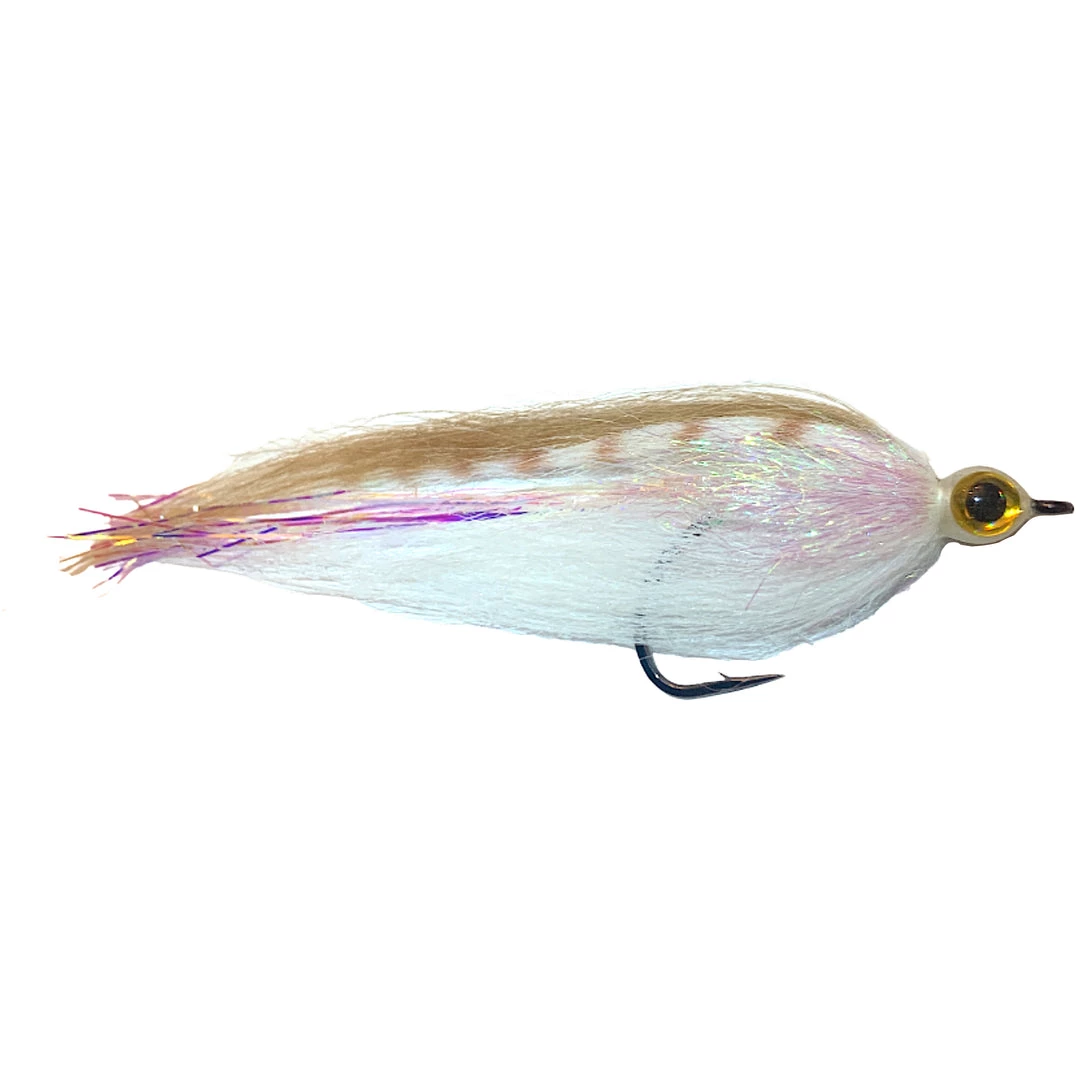A large 5″ baitfish with an epoxy head and realistic eyes. This is a perfect big fish fly that is easy to cast and will fish well on a floating, intermediate, or sinking line. Largemouth, smallmouth, striped bass, and any other predator that eats big minnows will love this fly. 2/0 big game hook.