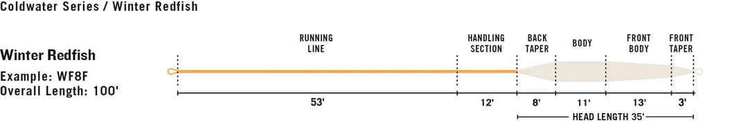 RIO’s Winter Redfish line is designed specifically for anglers targeting big gulf Red in cooler conditions. The line features a short, powerful front taper that has no problem turning over large mullet and baitfish patterns,m white the short , easy casting head ensure the line loads up at close range. The line has slick coating and medium-stiff core that will not tangle in cooler conditions, and features RIO’s XS and AgentX technologies, as well as welded loops on both ends.