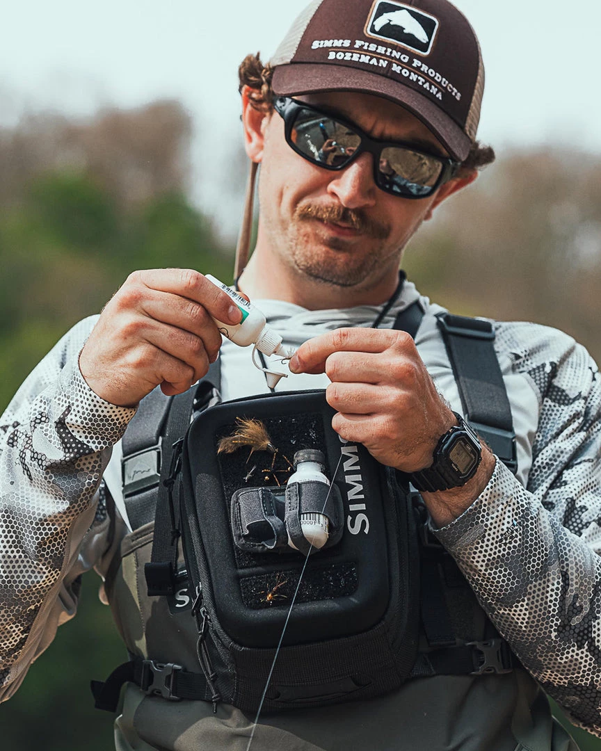 Simms Freestone Chest Packย has multiple carry modes โ wear it comfortably on your chest, strap it to a pack or your wader suspenders โ and it includes a compression-molded main compartment and a drop-down workstation for smart, compact fishing functionality.