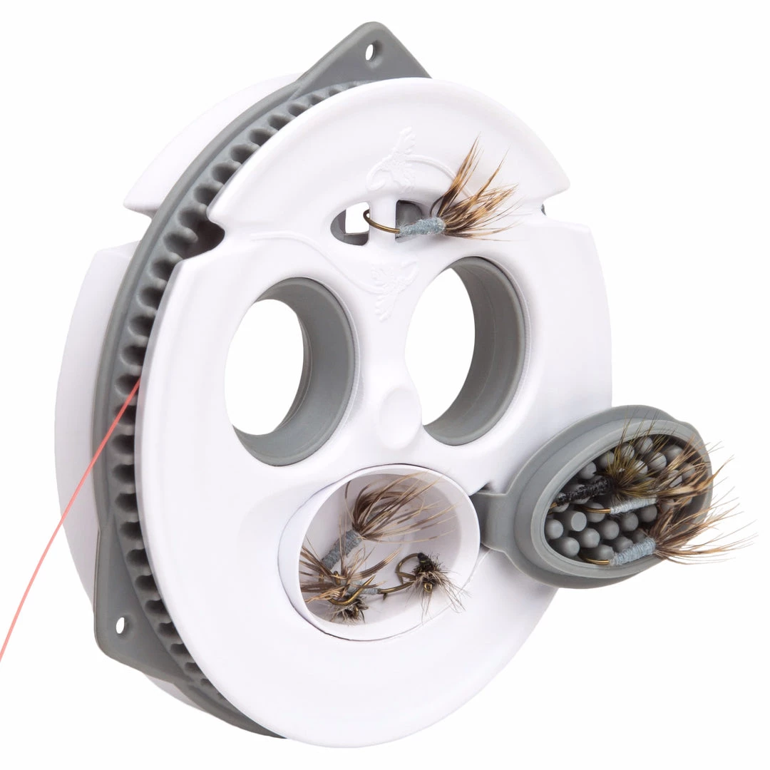 The Tenkara USA Keeper features two patent-pending solutions. The first feature is a unique line-catching mechanism. As you wind the line it gets automatically caught between two walls so that the line never “explodes” out of the spool, and you can stop winding it at any point rather than looking for a notch to stop.