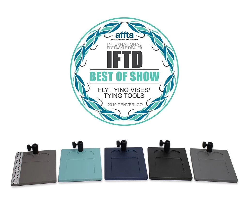 The Renzetti Streamer Pedestal Base comes with 2 magnetized round pockets, ideal to hold hooks, beads or any small piece, a measurement indicator and a large pocket to hold anything you desire. It is such a great accessory it won the Best of Show in the Fly Tying Vise Category at the 2019 IFTD show last October.
