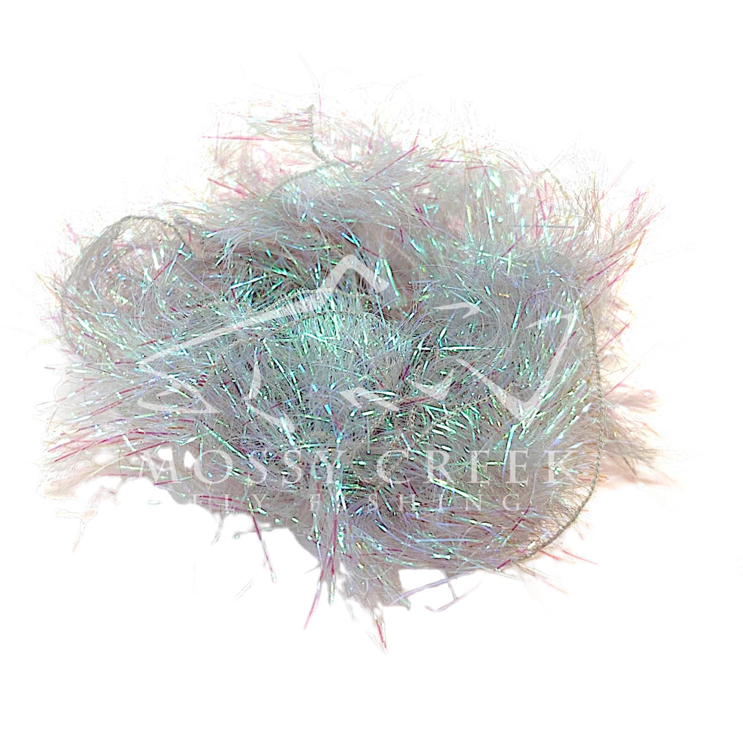 A single-sided chenille with fine hair-like fibers mixed withย pearlescentย thin mylarย that can be used to wrap collars or palmered for streamer bodies. Ideal for articulated streamer patterns, and also works well as a replacement for streamer sized dubbing brushes.