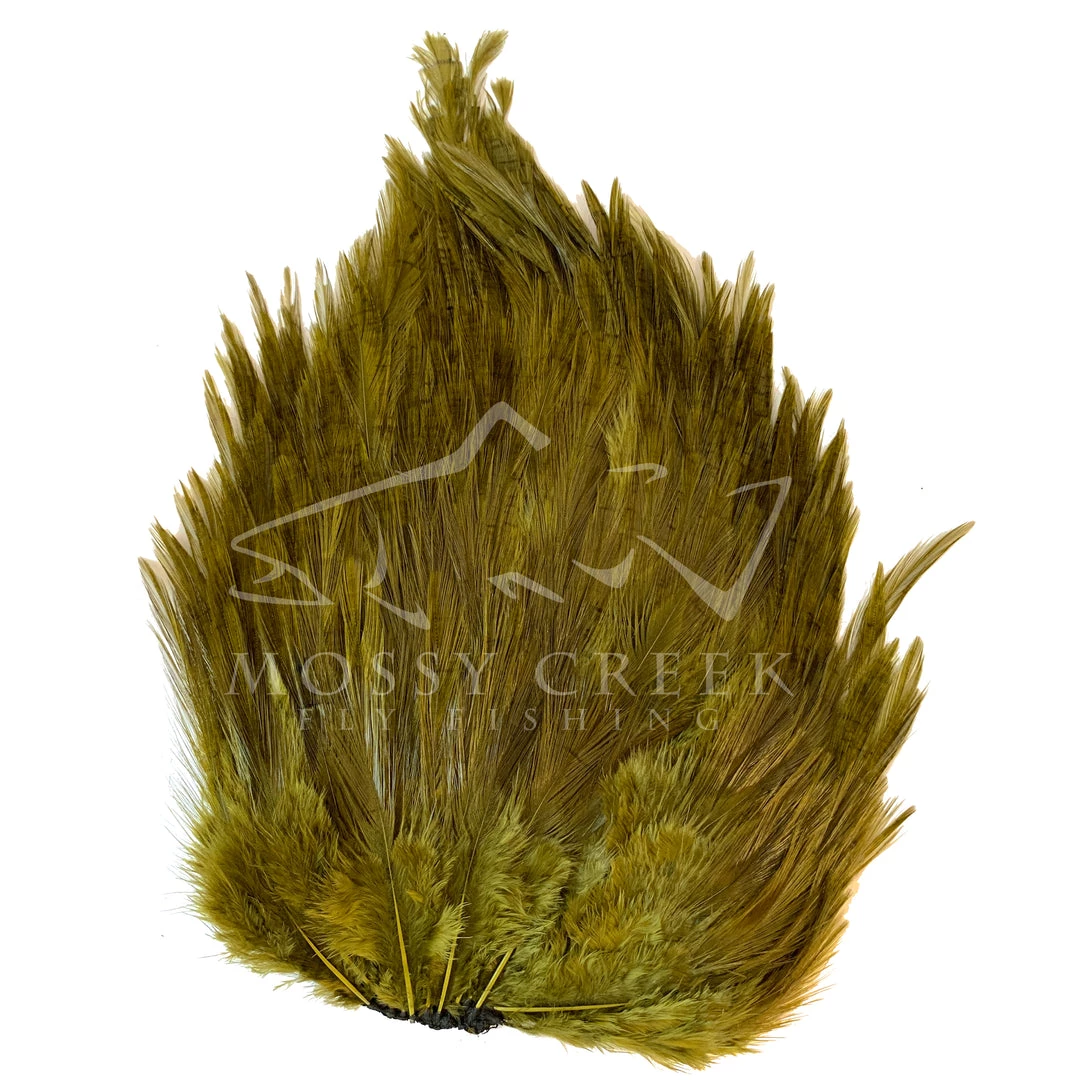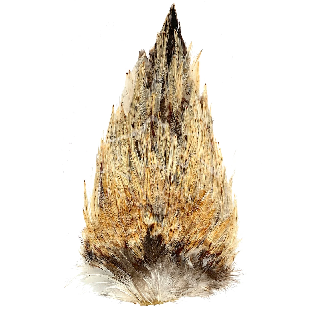 If you have an interest in winged streamers, these Indian Rooster Saddle Patches are the coolest. Hackles are narrow, stiff and have a good taper. Use for small wooly buggers and large dry flies.
