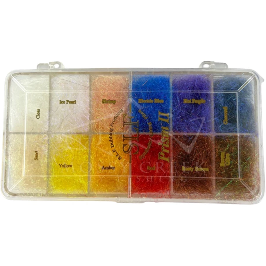 SLF Prism Dubbing is made from a multi-laminated synthetic that actually reflects light back to the eye in a separated spectrum just like a prism! This dubbing has been uniquely processed to preserve its fish catching eye appeal. S.L.F. Prism dubs easily and comes in colors that other dubbings just cannot match.