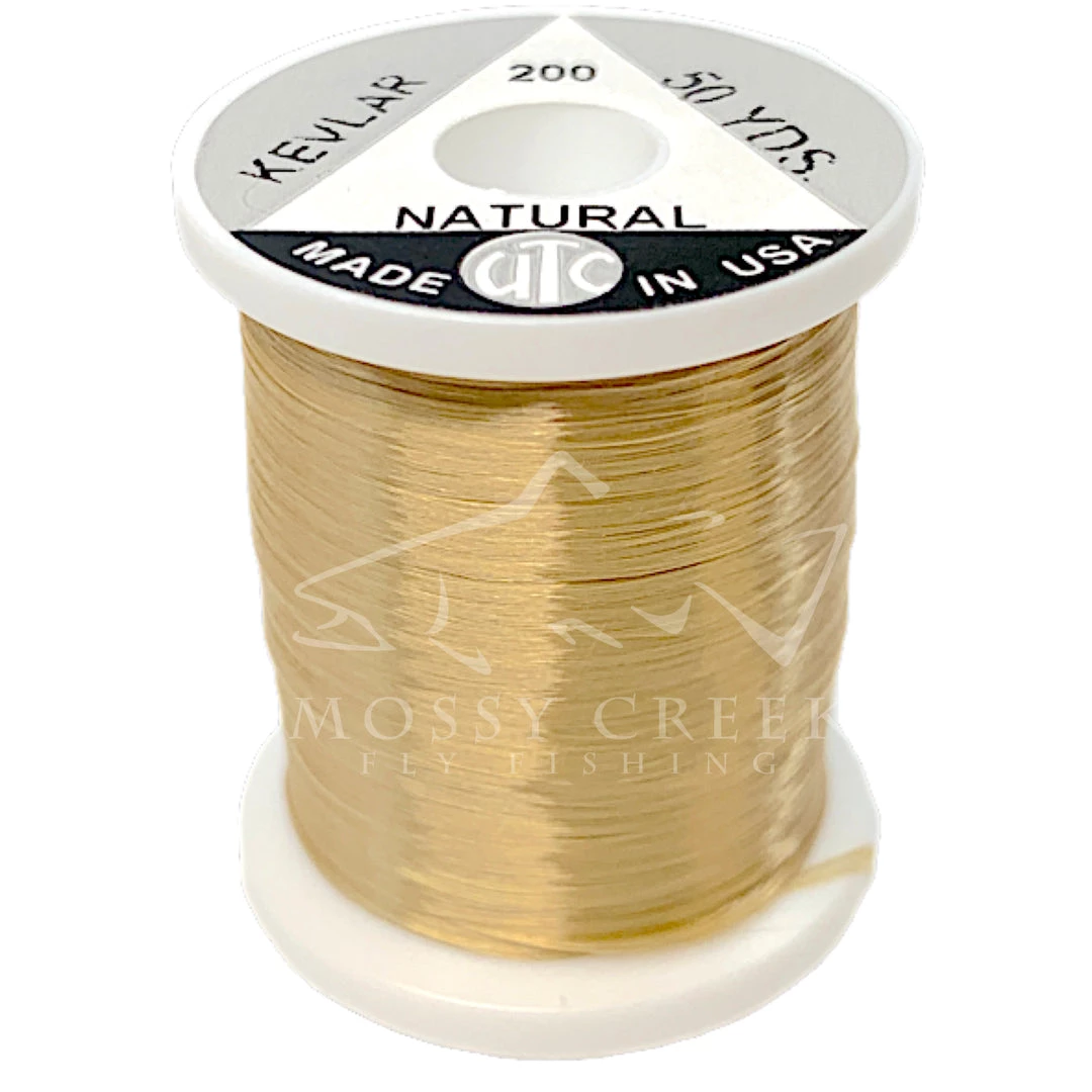 Same material used in bullet proof vests. This is an ultra strong thread used for heavy work; tying eggs, and spinning and stacking deer and elk hair. Be careful, it will cut through the hair (and your fingers) if you apply to much tension without a few soft wraps. 200 Denier and the breaking strength is 128 ounces. Color: Natural