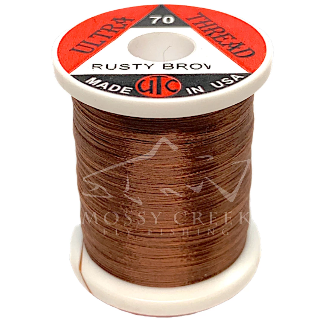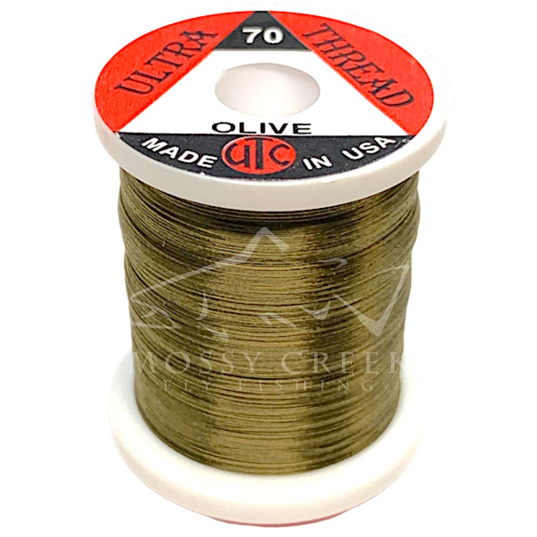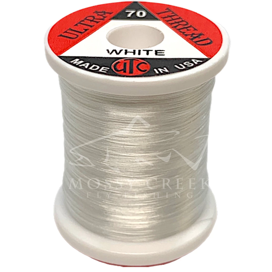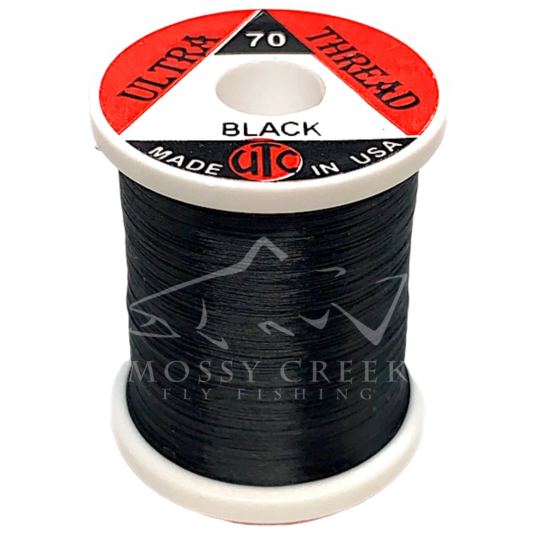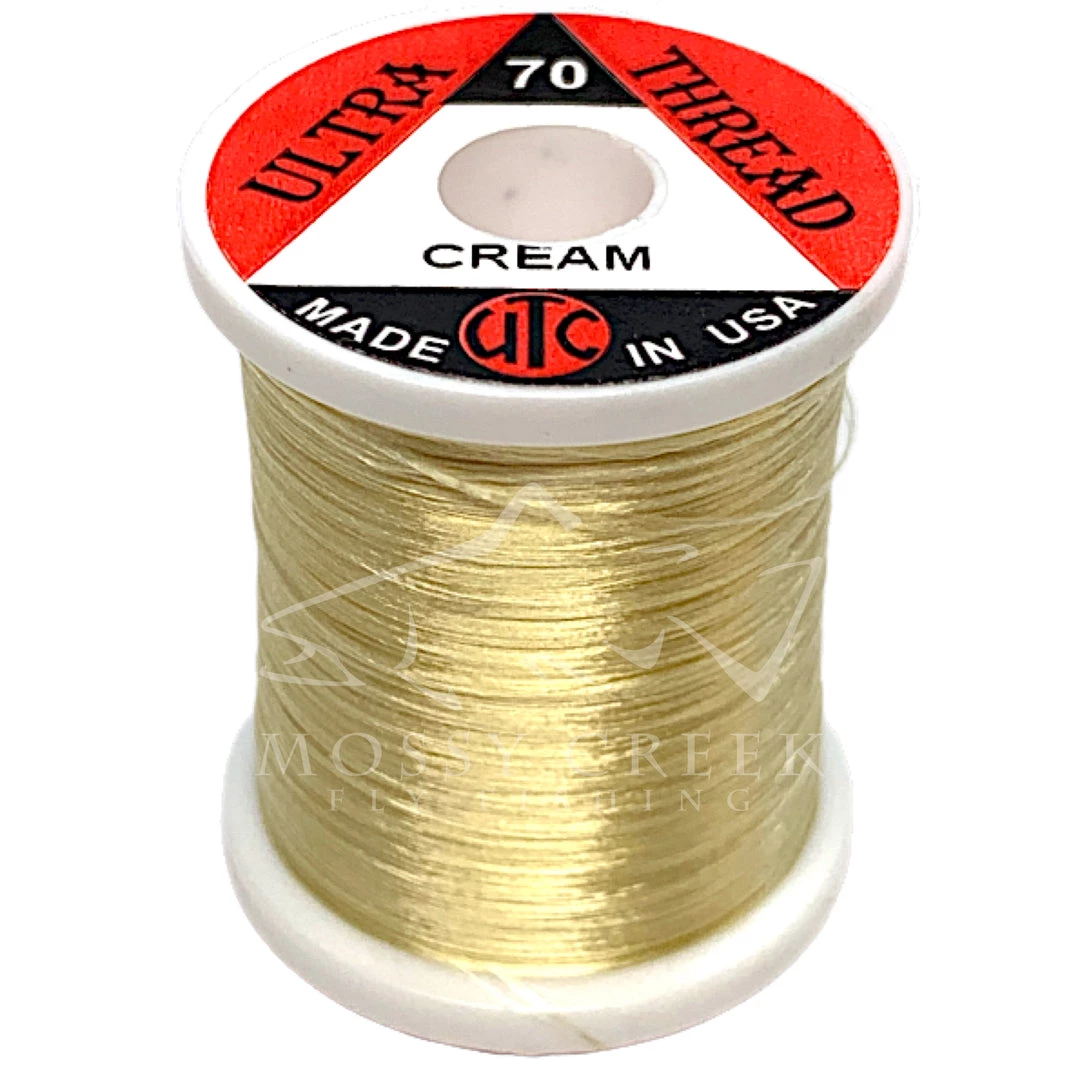 UTC is an extremely popular tying thread. 70 denier is a great size for tying the smallest of flies and for tying with low bulk on larger flies. It is the ideal choice for dry flies, nymphs, and midges size 14 through 30. Multi stranded thread is easy to split for loops.